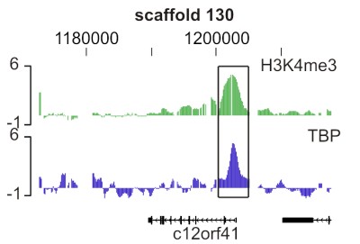 (2) an experimentally defined promoter array, based on 5' ends of transcription units decorated with histone H3 lysine 4 trimethylation in gastrula stage embryos.