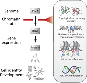 Chromatin state, as defined by chromosome topology, chromatin accessibility and epigenetic modifications, can act as a filter of genomic information influencing lineage commitment and epigenetic stability (Perino and Veenstra, 2016)